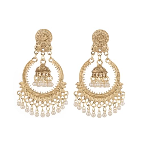 Pärla ihålig cirkel pärla tofs dinglande droppörhängen för kvinnor flickor boho retro indisk Jhumki klocka lätt dinglande blomma rund skiva stud allergivänliga mode smycken gåvor, Metall, Pärla