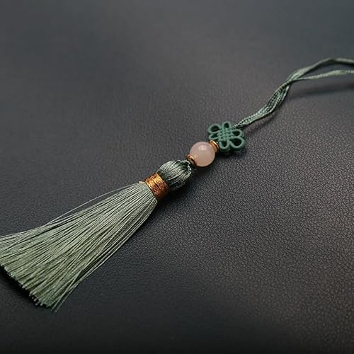 SYSUII 10 stycken mini tofsar, handgjorda sidentofsar nyckelring med pärlor bokmärken tofs hänge små kinesiska knutar för gör-det-själv smycken örhänge pyssel nyckelring – grön