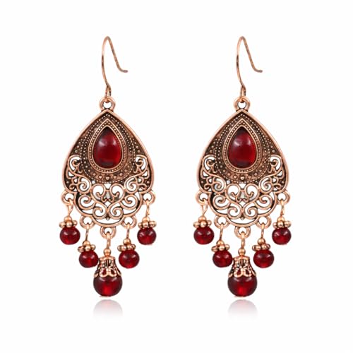 Bohemiska retro ljuskronor örhängen vintage röd kristall tårdroppe tofs dinglande smycken för kvinnor Mexiko berlocker, Medium, Metall, Ingen ädelsten