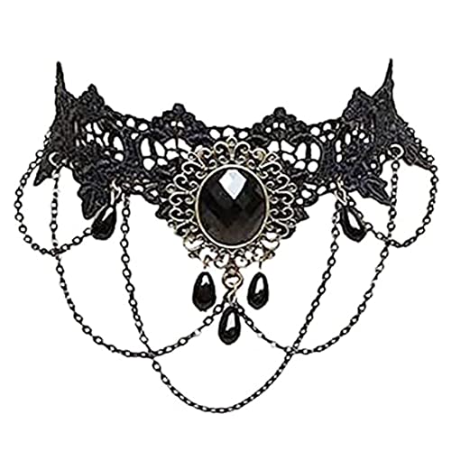 Prosy Halloween gotisk svart spets choker halsband tofs krage choker smycken justerbar för kvinnor och flickor, Metall
