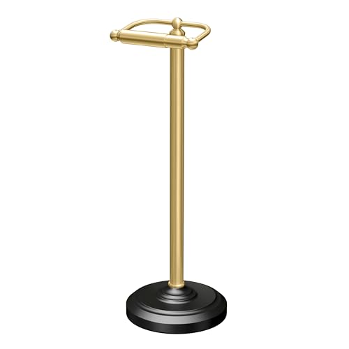 Gatco 1436MXB, Freestanding Toilet Paper Holder, 22” H, Matte Black Polished Brass/Floor Standing Weighted Base Toilet Paper Holder Stand