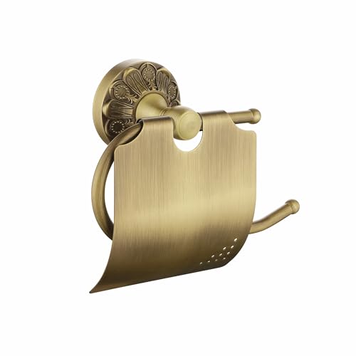 Lucyound Antique Brass Toilet Paper Holder with Cover, Wall Mounted Toilet Paper Roll Holder, Vintage Gold Decorative Bathroom Accessories, Petal-Relief Series