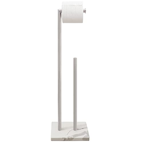 Gzila Free Standing Toilet Paper Holder Stand with Reserve, Heavy Weighted Marble Design Base SUS304 Brushed Nickel