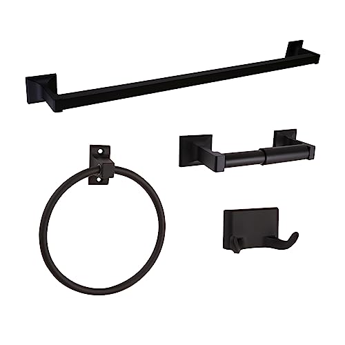 Millbridge 4-Piece Bathroom Accessory Set, Matte Black, Includes Towel Bar, Towel Ring, Toilet Paper Holder, and Robe Hook – Design House, 534628