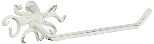 Hampton Nautical K-9205-w Whitewashed Cast Iron Octopus Toilet Paper Holder 11" - Beach Bathroom Decor - Beach Decor - Cast Iron Decor