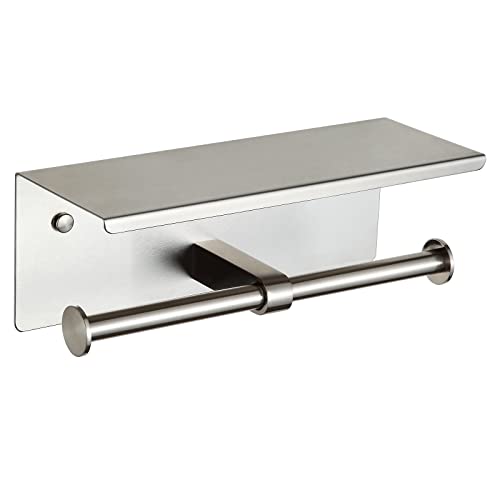 Double Toilet Paper Holder with Shelf Brushed Nickel Toilet Paper Holder Wall Mounted