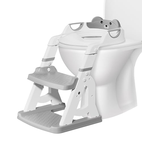 Potträning toalettsitstränare: Barnens toalettträningssits med stegpall – vikbar bärbar potstol med justerbar höjd stege skyddshandtag mjuk kudde vit för baby småbarn pojkar flickor