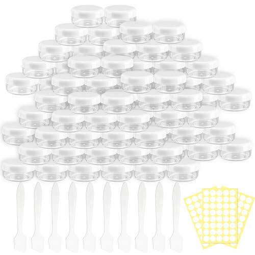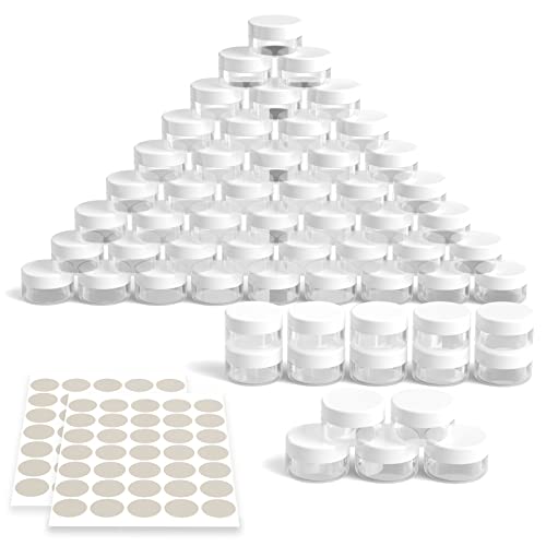 Newaner 60 stycken burkar, degel 10 g, 10 ml, krämburk, tom burk, transparent degel med skruvlock, burkar med klistermärken, perfekt för smink, krämer, lotioner, miniljus (vit)