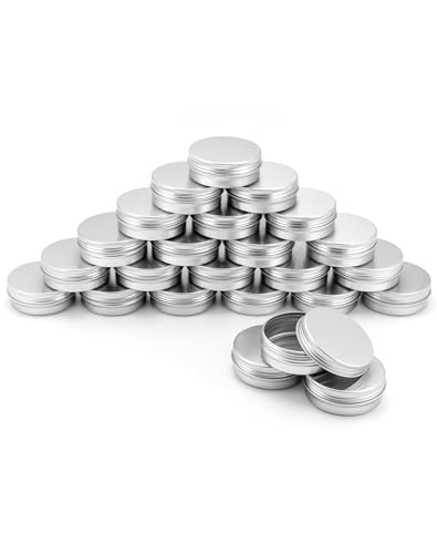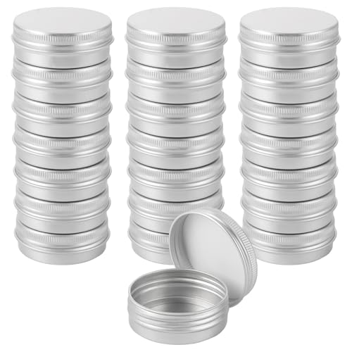 SHUESS 30 stycken aluminiumburkar, 30 ml rund aluminiumburk, bärbara små plåtburkar med lock, aluminium tom burk för läppbalsam, salvor, kosmetikakräm, miniljus, pysselsmycken (silver)