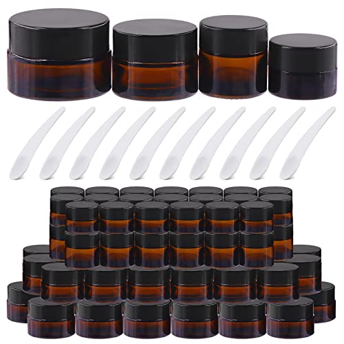 Tanstic 30 st bärnstensfärgade glasburkar med lock, inklusive 20-pack 15 ml bärnstensfärgade runda glasburkar med inre foderlock och 10 st plastsked, tom bärnstensburk, matförvaringsbehållare, tom burk