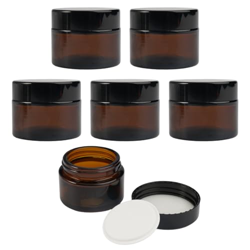 6 stycken 50 ml salvburkar glas krämburkar bärnsten degel tom, UV-beständig, tomburk, klar kosmetisk behållare, burk, glas krämburk för fyllning, kosmetika, krämer, lotioner, atterisk, olja