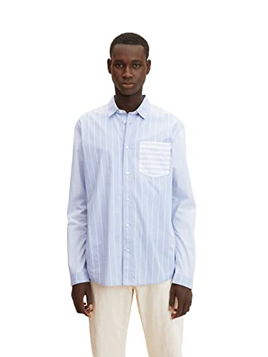 TOM TAILOR Denim Herr Avslappnad passform skjorta med ränder 1032372, 30349 - Blue Stripe Mix Design, M