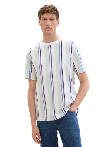 TOM TAILOR Denim T-shirt för män, 35617 - Mint White Blue Mix Stripe, XS