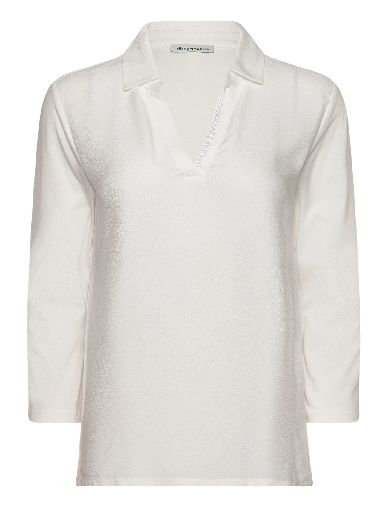 T-Shirt Fabric Mix W Collar White Tom Tailor