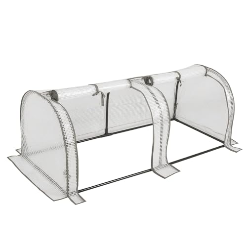 Outsunny Mini trädgårdsväxthus mini tunnel tomatväxthus 3 L x 1 l x 0,8 H m stål PVC hög densitet anti-UV, 3 fönster med rullbar dragkedja, grön och transparent