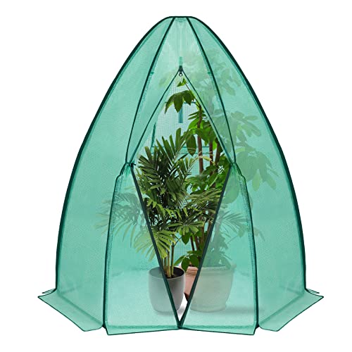 VOUNOT Trädgårdsväxthus PE vinterväxthus kupol för grönsaker växter blommor växthus tipi med förstärkt presenning, 135 g/m2 tomatväxthus för balkong och terrass litet trädgårdsväxthus, 160 x 160 x 180