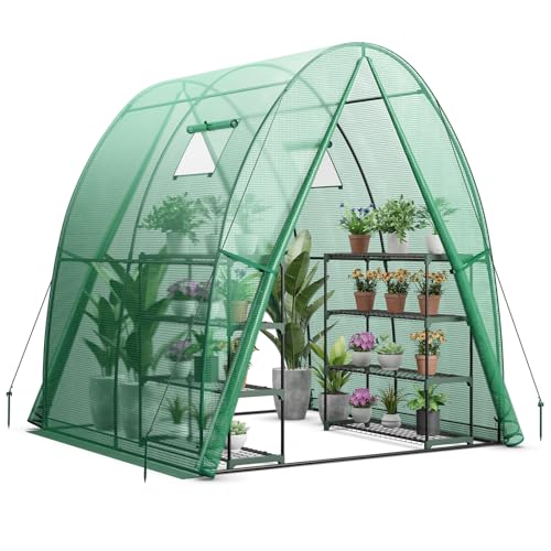 COSTWAY Folieväxthus, växthus med PU-skydd för allväderet, rulldörr och fönster, tomatväxthus, växthus för tomater och krukväxter (181 x 181 x 200 cm, grön)