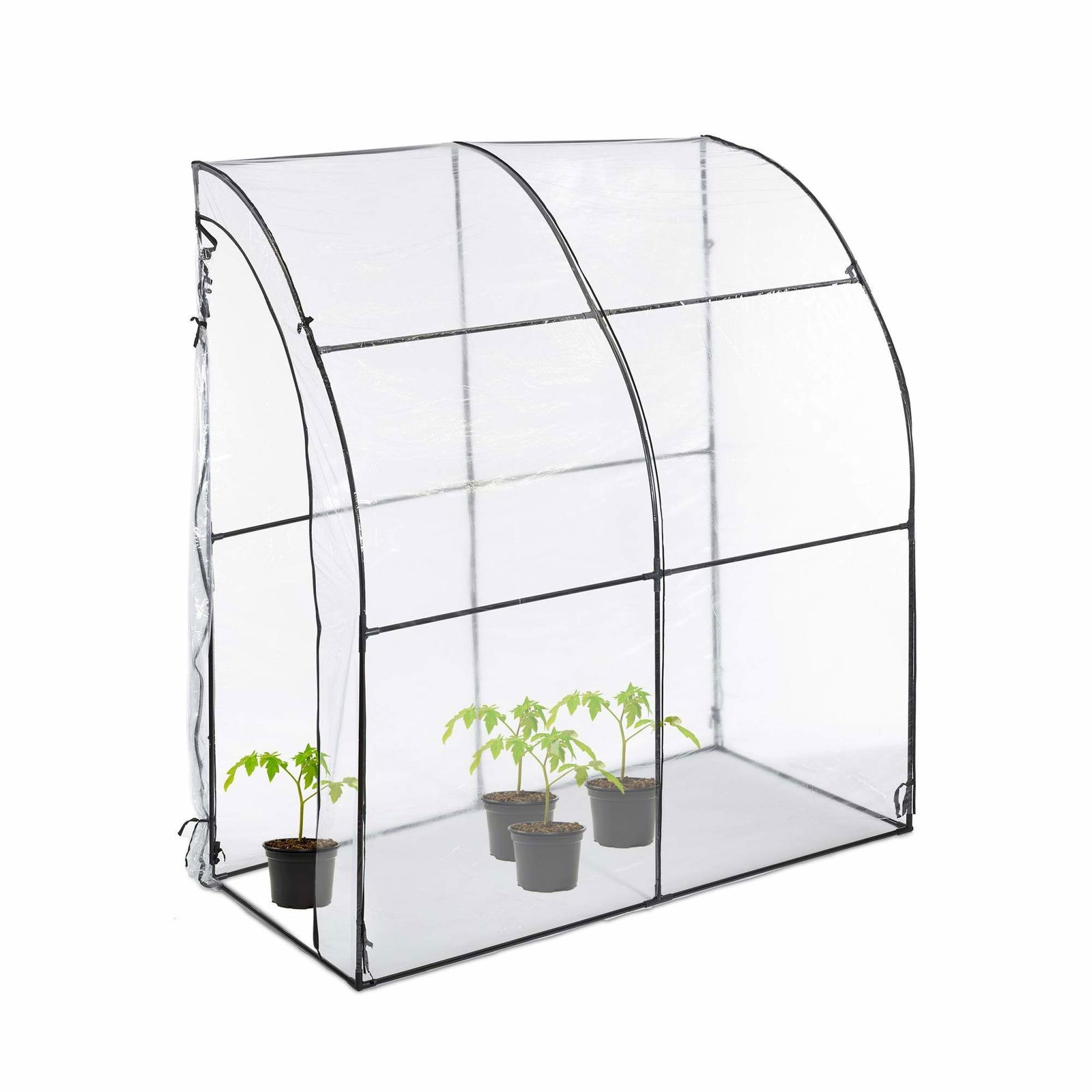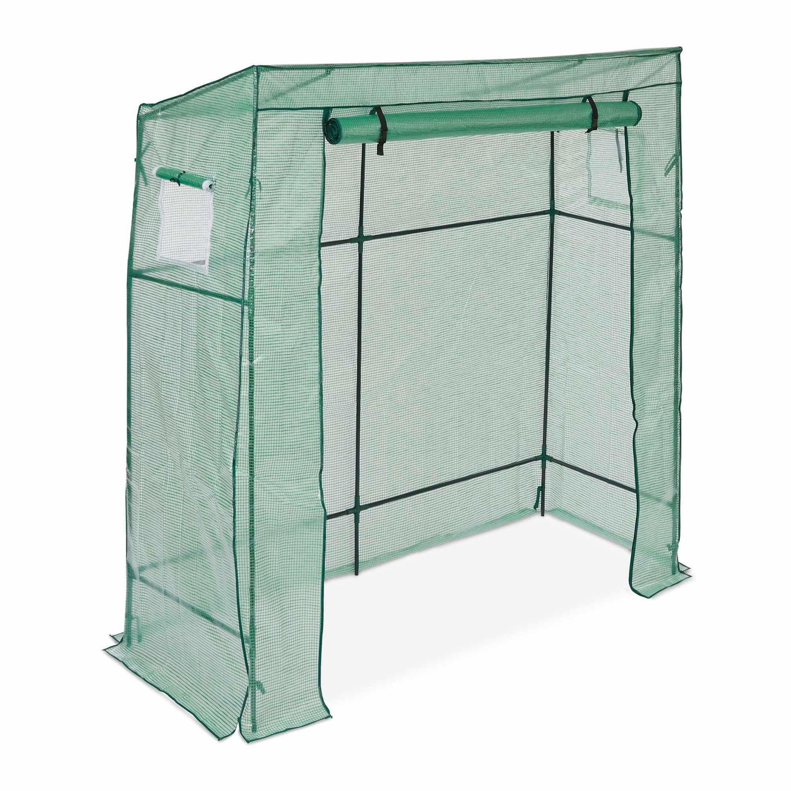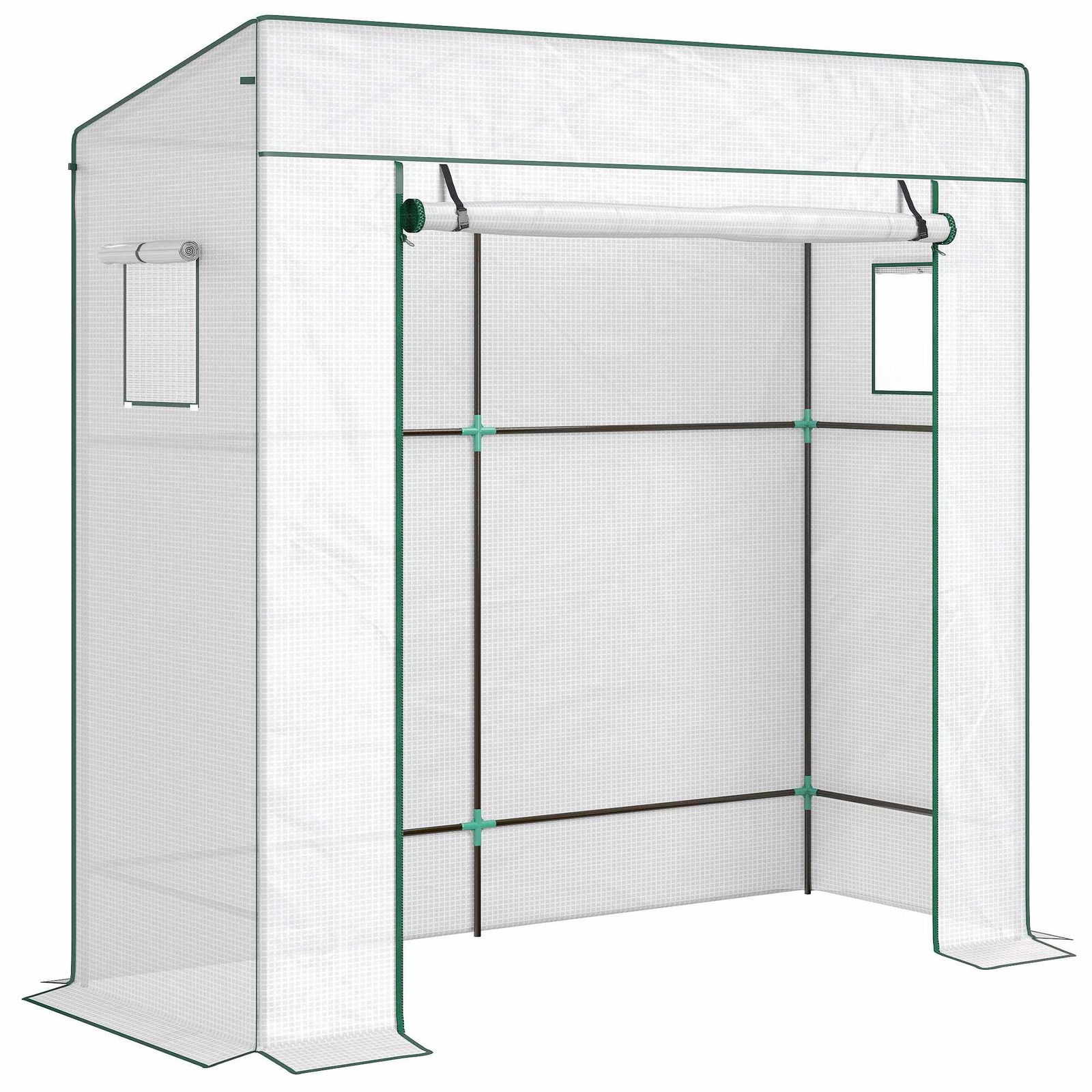 Outsunny Trädgårdsväxthus vägghängande tomatväxthus 1 fönster 2 dörrar med dragkedja rullbara, för grönsaker, växter, blommor, 200 L x 80 l x 200/180 H cm