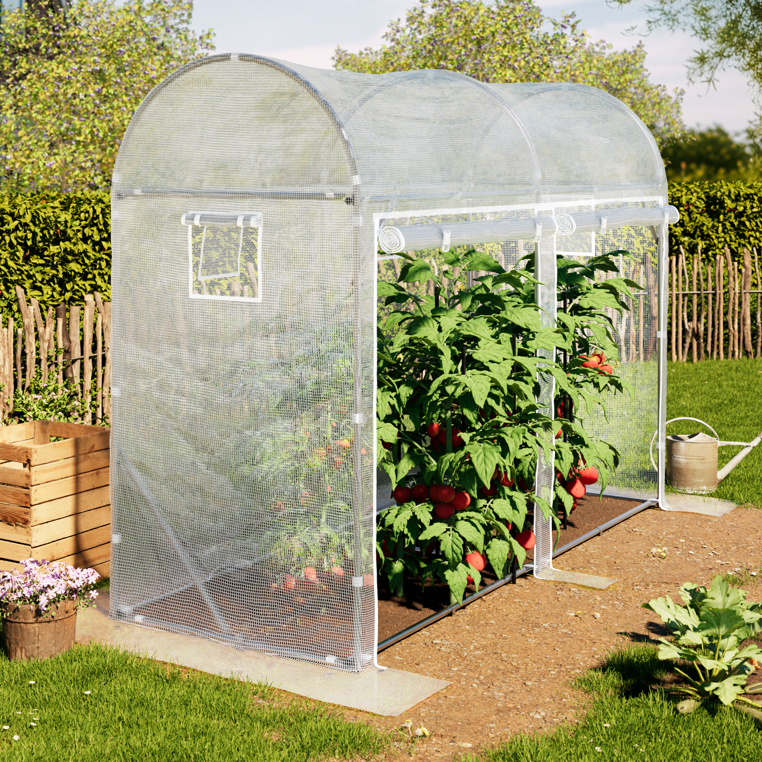Folieväxthus tomatväxthus 200x100x215cm med nätfönster och rulldörrar UV-skydd i vitt för växter och trädgård