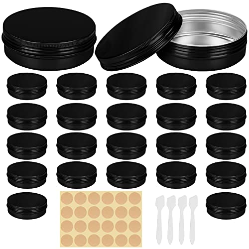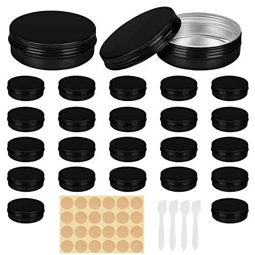 Belle Vous 24 Pack 114 ml Runda Aluminium Burkar - Skruvkork Burk - Mini Svarta Tomma Metallburkar/Behållare för Resa, Kosmetika, Godis/Sötsaker, DIY Hantverk, Läppbalsam, Tester och Förvaring