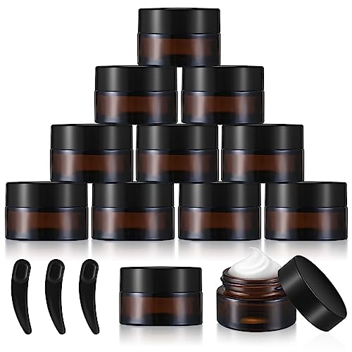 Saijer Bärnsten glas tomburk, 12 stycken kosmetiska glas tomburkar krämburkar tomma burkar bruna glasbehållare salva degel påfyllningsbar kosmetisk behållare för krämer lotioner eteriska oljor pulver