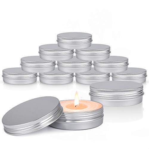 HOMEJOY 12 stycken 50 ml aluminium tomma burkar med skruvlock resa bärbar liten metallburk med 2 stycken runda klistermärken för läppbalsam lotion kräm kosmetika, silver