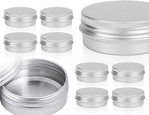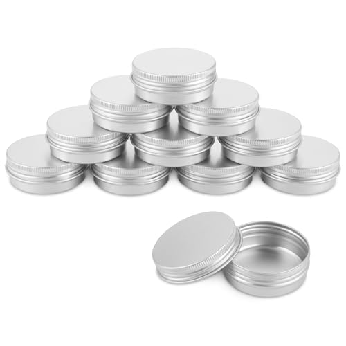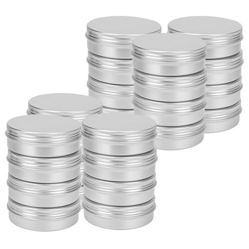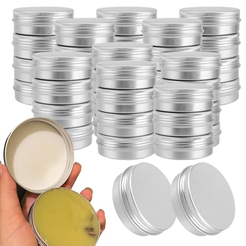 YUENPUN 40 st 60 ml/2,7 oz aluminiumburkar med skruvlock, aluminiumburkar, tomma behållare i aluminium, små metallrunda burkar för lotion, kräm, förvaring, gör-det-själv-ljus
