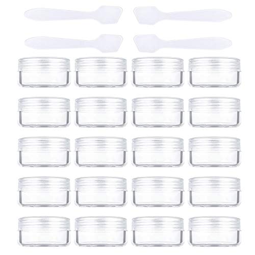 Desenda 20 st 5 ml genomskinliga provkrukor tomma små resebehållare läckagesäkra påfyllningsbara kosmetiska burkar sminkprovbehållare med lock, förvaringskruka för läppbalsam skrubba gör-det-själv