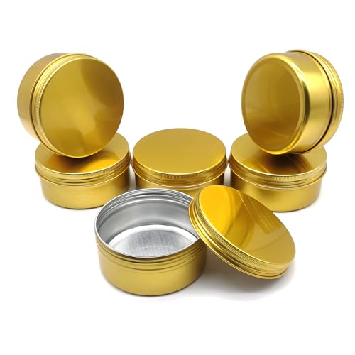Wopanxye 6 st 150 ml aluminium tenn burkar med skruvlock, 142 ml tomma smink läppbalsam behållare runda reseburkar kosmetiska krukor, guld metallburkar för slime salve grädde ljus pulver te pärlor