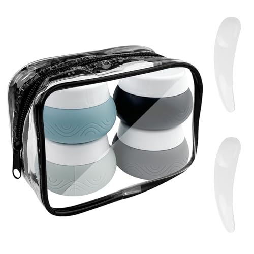 Chiluxendo 4 st. resebehållare för krämer, 30 ml resekosmetisk behållare i silikon, tomma kosmetiska burkar med spatel, rund resegräddehållare (svart serie)