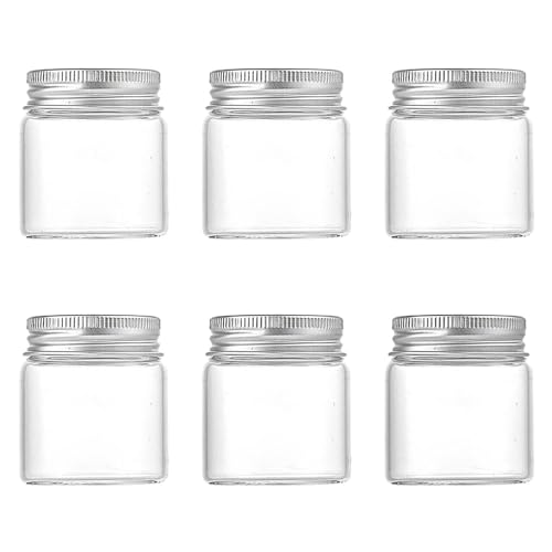 Danmu Art 6 st 50 ml 47 mm x 50 mm flaskor klara glasflaskor burkar med aluminiumskruv topp starka söta tomma provburkar små behållare