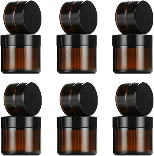HOTUT 6 st 50 ml bärnstensglasburkar, bruna glas kosmetiska tonade burkar, tomma kosmetiska behållare med inre foder och svarta lock för lotioner grädde salvor resa smink skönhetsförvaring