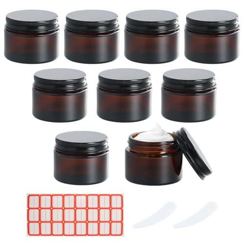 8 st bärnstensglasburkar 20 ml 30 ml 50 ml, resekosmetiska burkar med lock, 2 sked och lim, tomma behållare grädde krämpulver, UV-resistent, läckagesäker (50 ml)