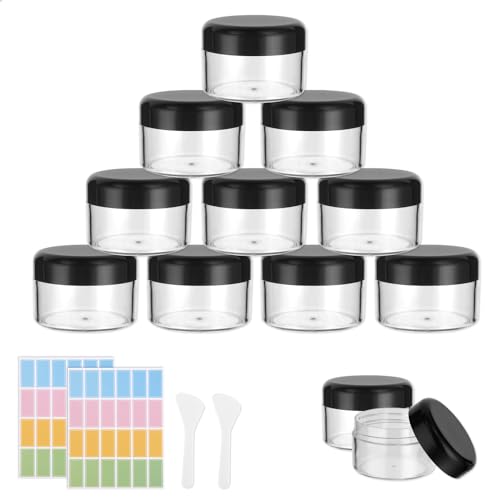 MELLIEX tomma kosmetiska krukor plast rese kosmetika behållare burkar för provkrämer, 20 stycken 10 gram/10 ml, genomskinlig, 10g/10ml, Kompakt