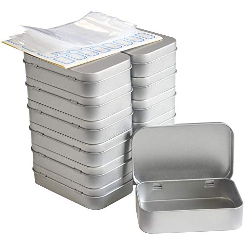 DARUITE Små burkar, 12 stycken metallburkar, rektangulära tomma gångjärn burkar, burkar behållare med lock, mini bärbar förvaringslåda för nyckel, godis, mynt, örhängen