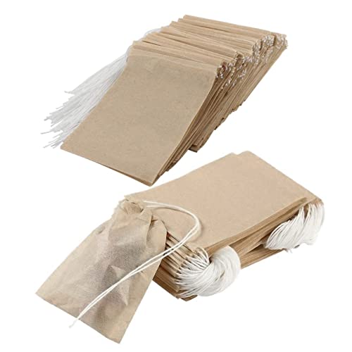 Lahviuu Tepåsar tomma, 200 st papper tefilterpåsar engångs naturlig massa material tesil med dragsko, lösa blad te papper silväska för te och örtpulver, 5 cm x 7 cm (originalfärg)