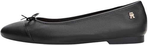 Tommy Hilfiger Tå Keps Läder Balettpumpar, Svart, 38 EU