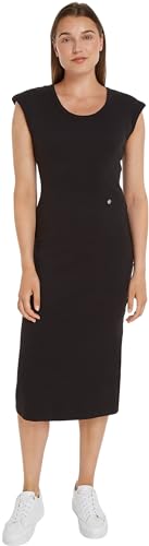 Tommy Hilfiger Dam Slim Rib DRS Midi-keps ärm bodycon klänningar, Svart, S