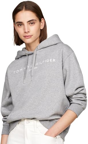 Tommy Hilfiger Dam MDRN REG CORP LOGO HOODIE WW0WW43598 pullover huvtröja, medium ljung grå, S, Grå (medium ljung grå), S