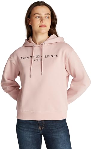 Tommy Hilfiger kvinnors CRV MDRN REG CORP LOGO HOODIE WW0WW45446 pullover huvtröja, rosa, 46, Rosa (dimmig rosa), 72