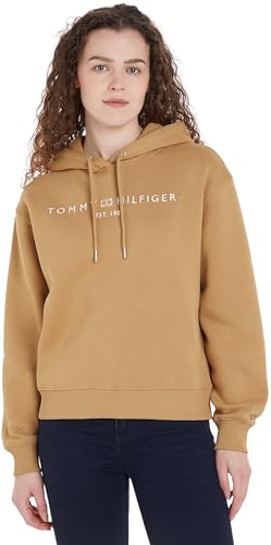 Tommy Hilfiger Dam MDRN REG CORP LOGO HOODIE WW0WW43598 pullover huvtröja, klassisk khaki, XXS, Kaki (klassisk kaki), XXS