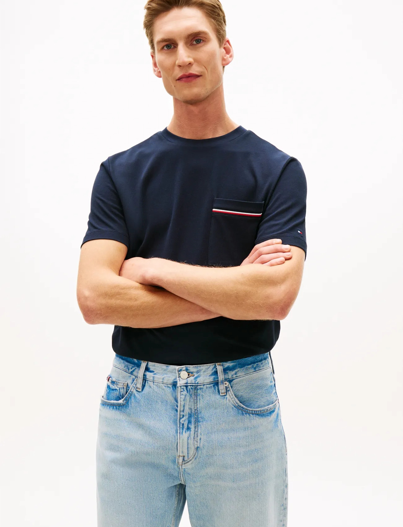 Tommy Hilfiger Global Stripe Pique Pocket Tee - Navy - S