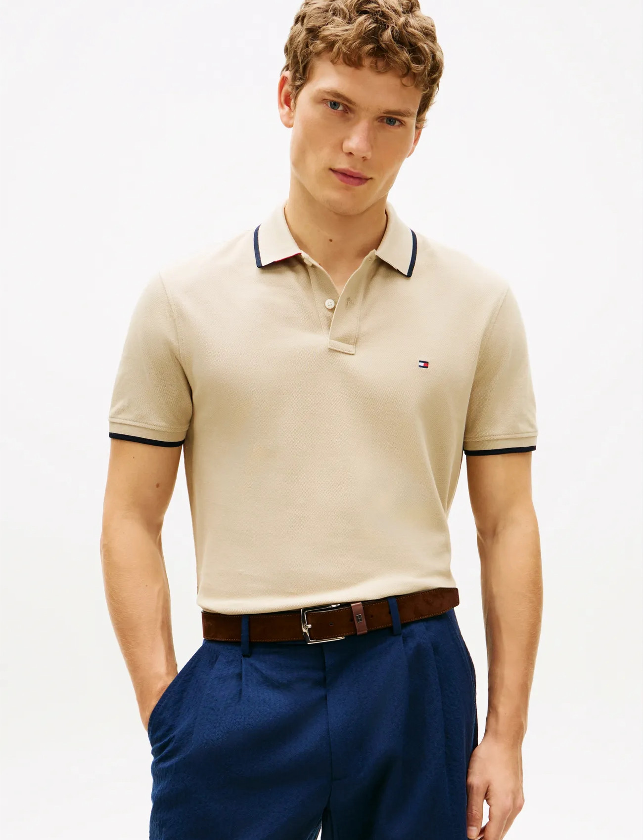 Tommy Hilfiger Pique Undercollar Reg Polo - Beige - M