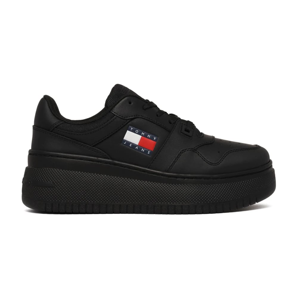 Tommy Hilfiger, Skor , Dam, 36 EU, Läder, Svarta Platform Sneakers med Logotyptryck