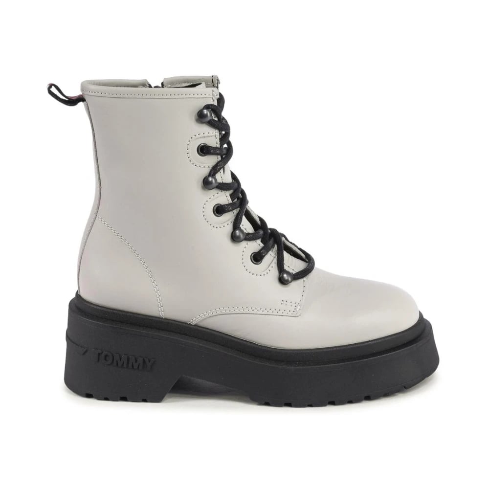 Tommy Hilfiger, Skor , Dam, 40 EU, Läder, Beige LaceUp Platform Ankelboots
