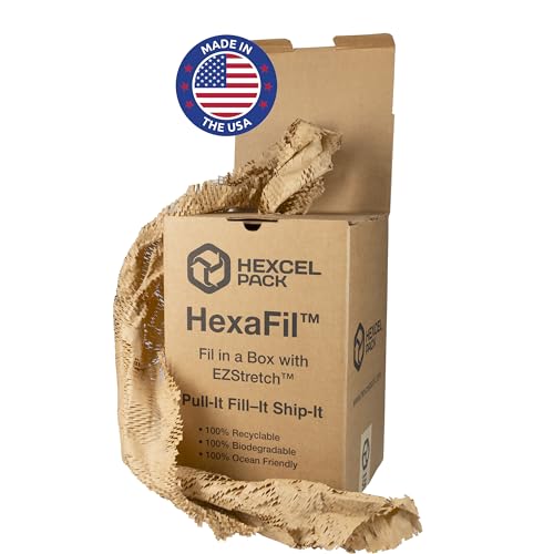 IDL Packaging HexaFil dämpande kraftpapper 38 cm x 1 700 tum i självfördelad låda – miljövänligt bikakealternativ till bubbelplast – innovativt förpackningspapper för tomrum fyllning och skydd