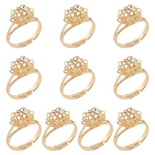 NBEADS 10 st blommor klo ring tomrum, 17,3 mm justerbar mässing filigran ring inställningar fingerringar komponenter äkta 14K guldpläterad klo ring bas för gör-det-själv ring smyckestillverkning
