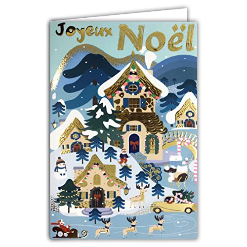 Afie 61-5647 God julkort i guld glänsande glittrande glittrande flamboyant tomte renar snögubbe pralets julgran fest - med vitt kuvert
