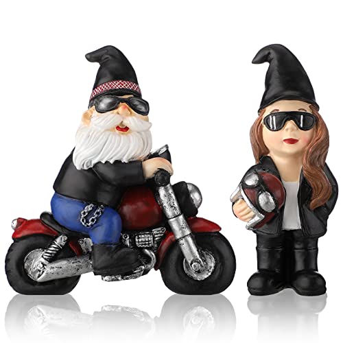 2 st biker tomtar kaffe ridning motorcykel jul svenska tomte tomte tomtar hartsfigurer nivåbricka samlarobjekt bordsdekor för hem bondgård kontor dekor (biker gnome)