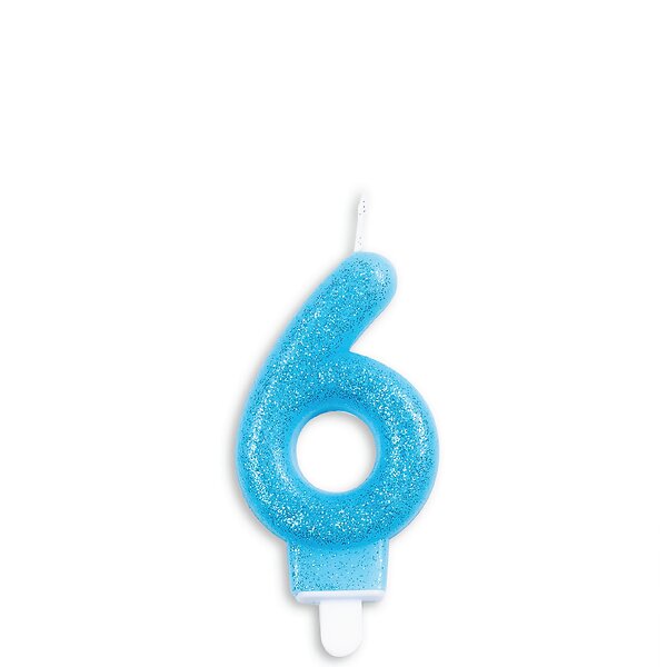 Globos Europe Tårtljus Siffra Glitter Blå Siffra 6